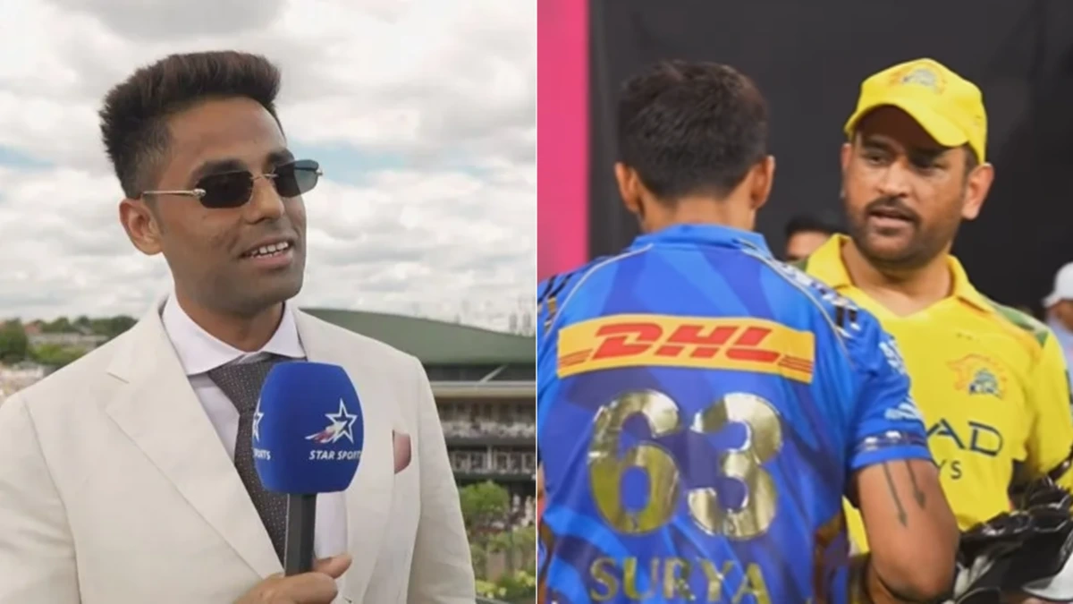 Suryakumar Yadav Names MS Dhoni As Dream Tennis Doubles Partner At Wimbledon 2025: विंबलडन 2025 में इस बार सिर्फ टेनिस ही नहीं, बल्कि क्रिकेट का भी तड़का देखने को मिल रहा है। कई मशहूर क्रिकेटर इस प्रतिष्ठित इवेंट में शामिल हो रहे हैं और अब इसी लिस्ट में भारत के टी20 कप्तान सूर्यकुमार यादव का नाम भी जुड़ गया है। अपनी पत्नी देविशा शेट्टी के साथ वहां पहुंचे सूर्यकुमार ने सेंटर कोर्ट की रौनक तो देखी ही, साथ ही एक मज़ेदार बयान देकर फैंस का दिल भी जीत लिया।