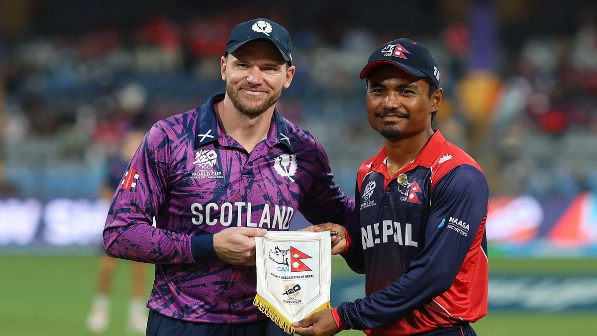टी20 वर्ल्ड कप 2026 के ग्रुप C के 33वें मुकाबले में नेपाल (NEP) ने स्कॉटलैंड (SCO) के खिलाफ टॉस जीतकर पहले गेंदबाजी करने का फैसला किया। यह मैच मुंबई के वानखेड़े स्टेडियम में खेला जा रहा है और दोनों टीमों के लिए सम्मान बचाने का मुकाबला बन चुका है।