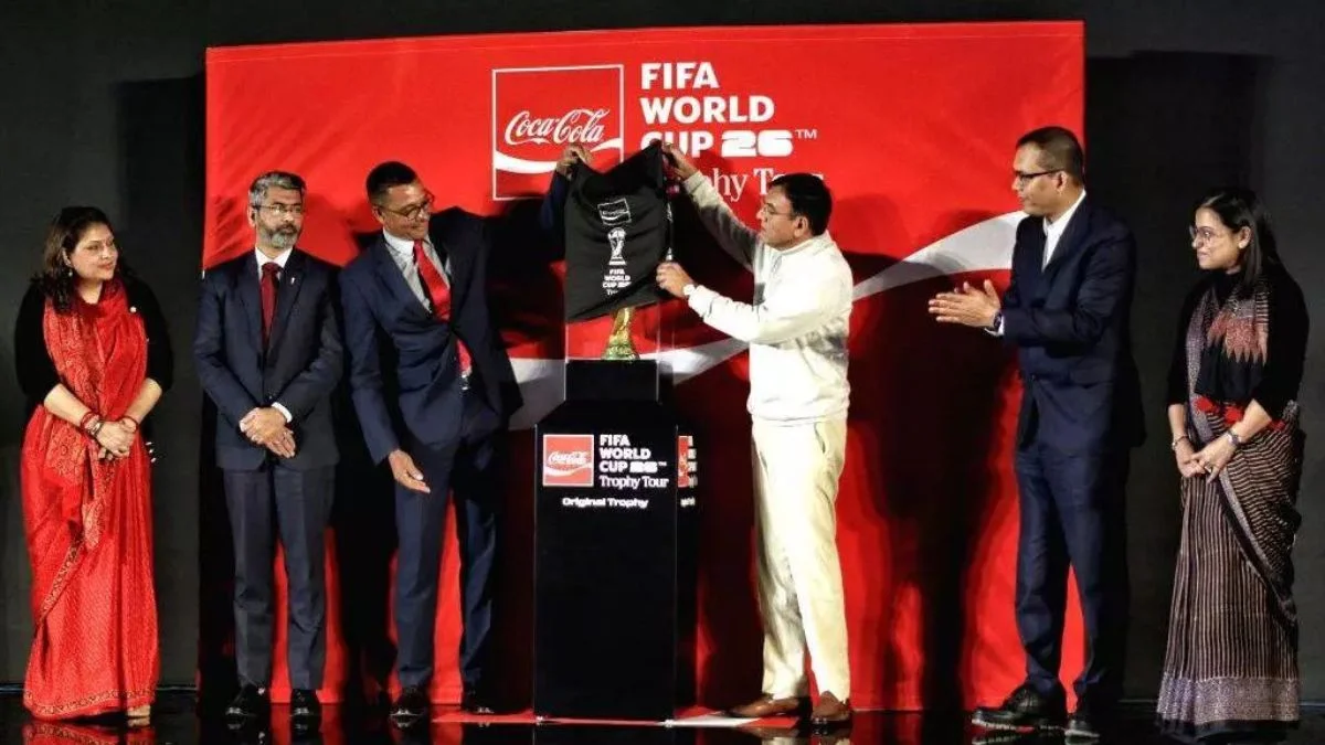 FIFA World Cup Trophy Tour: इस बार फीफा वर्ल्ड कप 2026 की शुरुआत आगामी 11 जून से होने जा रही है। लेकिन अब इससे पहले यह वर्ल्ड कप ट्रॉफी भारत पहुंच गई है। वहीं इससे पहले बीते शनिवार को ताज मान सिंह होटल में ब्राजील के पूर्व इंटरनेशनल खिलाड़ी गिल्बर्टो सिल्वा ने केंद्रीय खेल मंत्री डॉ. मनसुख मांडविया और अखिल भारतीय फुटबॉल महासंघ के अध्यक्ष कल्याण चौबे की मौजूदगी में ट्रॉफी का अनावरण किया था।