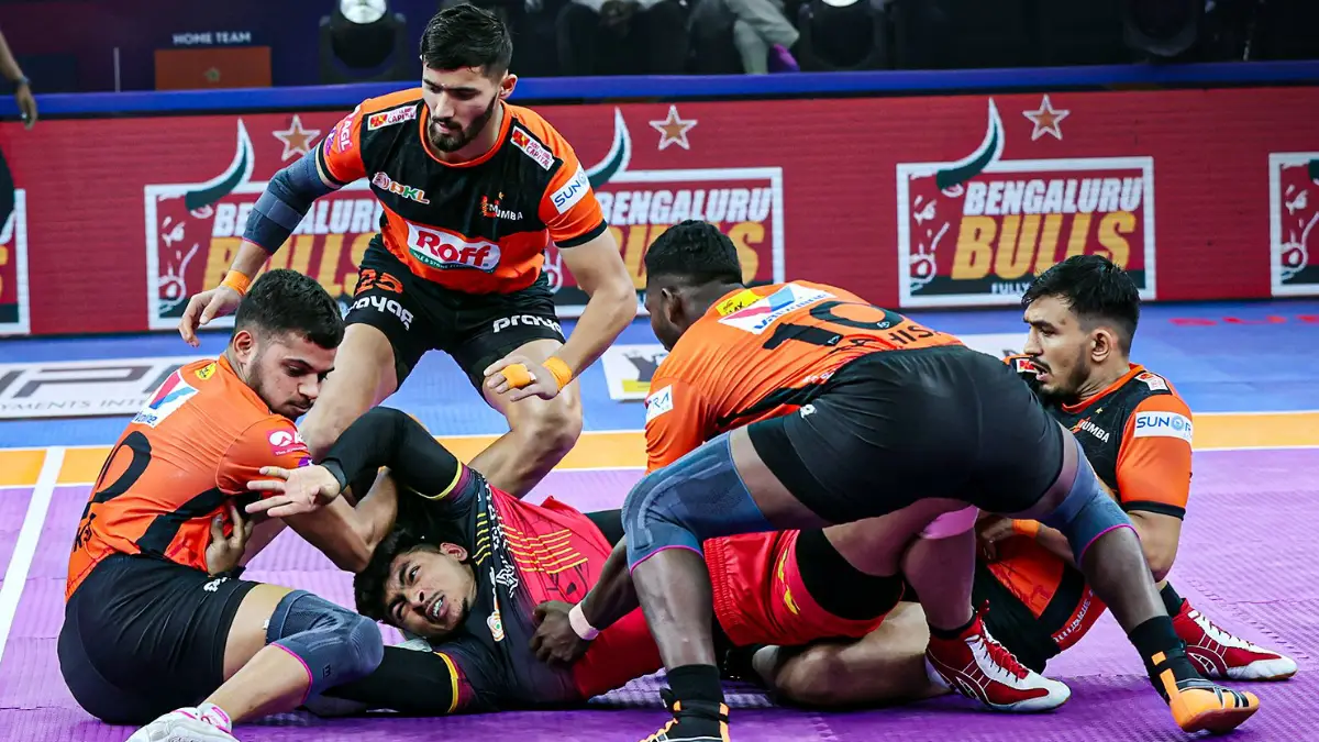 Ajit Chouhan shines as U Mumba beat Bengaluru Bulls 48-28 in PKL Match 15: प्रो कबड्डी लीग 2025 में शुक्रवार को खेले गए 15वें मुकाबले में यू मुंबा ने बेंगलुरु बुल्स को एकतरफा अंदाज में 48-28 से मात दी। इस जीत के साथ यू मुंबा ने अंक तालिका में अपने लिए दो महत्वपूर्ण अंक हासिल किए। टीम के स्टार रेडर अजीत चौहान ने इस मैच में 13 रेड प्वॉइंट्स लेकर शानदार प्रदर्शन किया और अपनी टीम की जीत में अहम भूमिका निभाई।