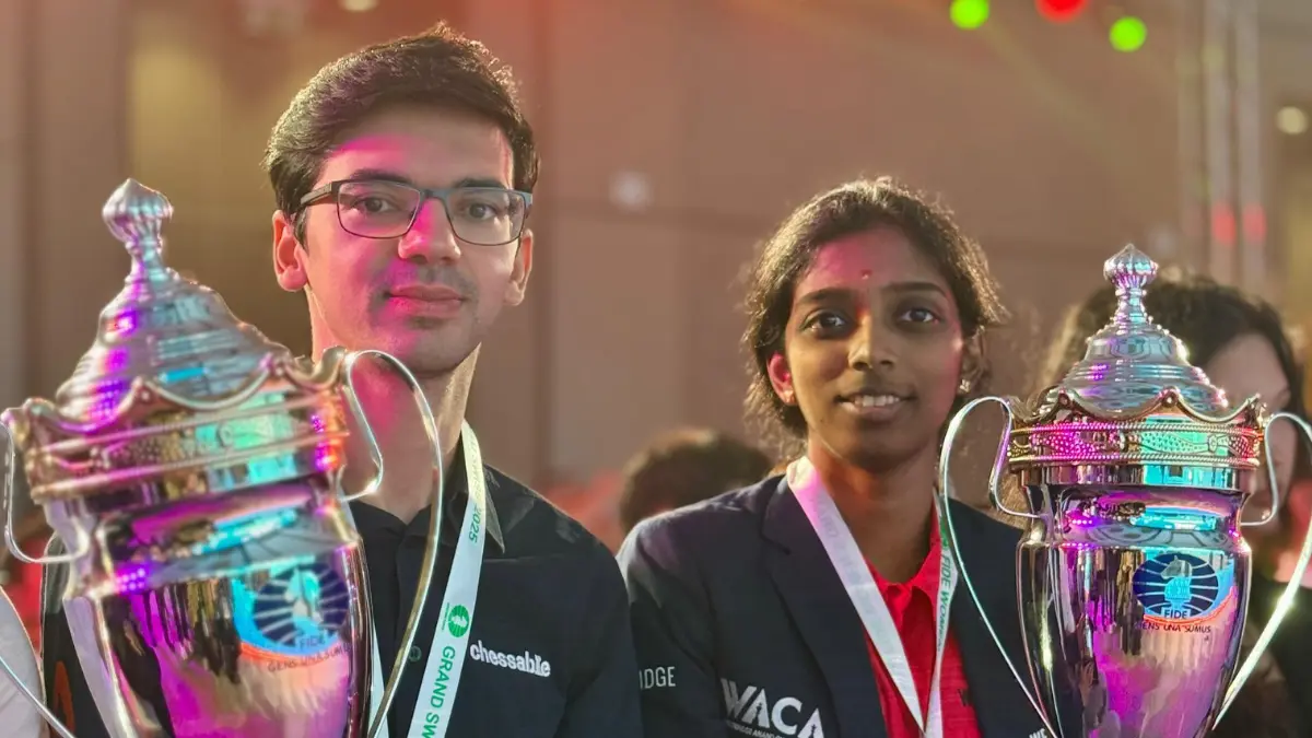 FIDE Grand Swiss 2025 Prize Money Difference Between Men and Women: FIDE ग्रैंड स्विस टूर्नामेंट 2025 खत्म हो चुका है और एक बार फिर यह टूर्नामेंट सुर्खियों में है। इस बार भारत की ग्रैंडमास्टर वैशाली रमेशबाबू ने लगातार दूसरी बार महिला वर्ग का खिताब जीतकर शानदार इतिहास रचा। वहीं ओपन सेक्शन में नीदरलैंड के दिग्गज ग्रैंडमास्टर अनीश गिरी ने खिताब अपने नाम किया। दोनों खिलाड़ियों का प्रदर्शन काबिले तारीफ रहा, लेकिन इन दोनों की प्राइज मनी में इतना बड़ा अंतर है कि यह चर्चा का विषय बन गया है।